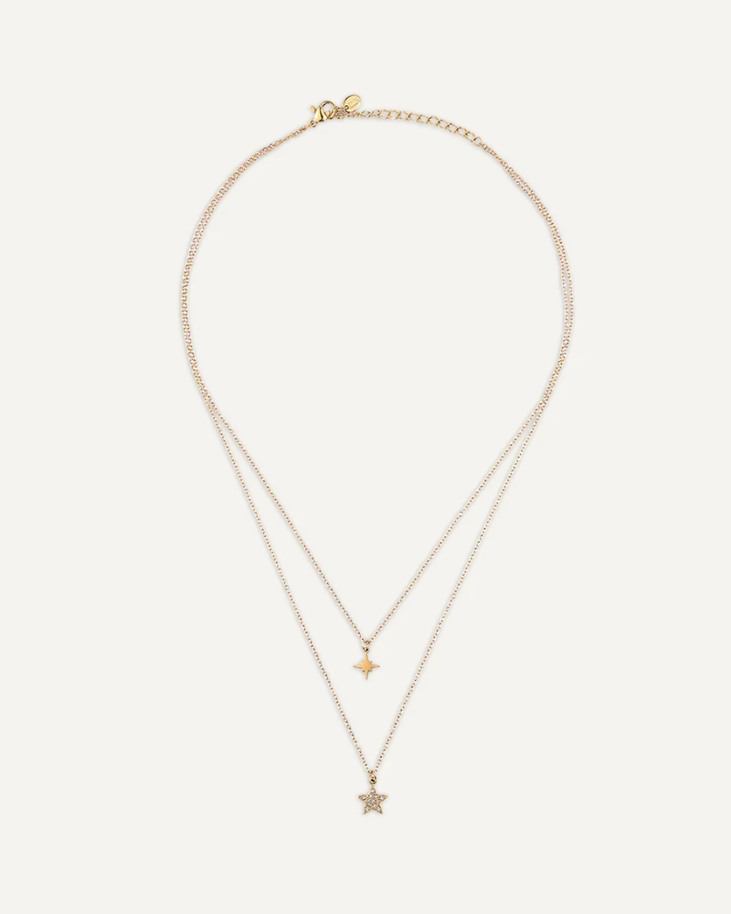 Shine bright with the Astra Star Layered Gold Necklace, a playful mix of delicate chains and twinkling stars. This sparkling layered design adds a whimsical, starry touch to any outfit, perfect for those who love to carry a little night sky magic wherever they go.