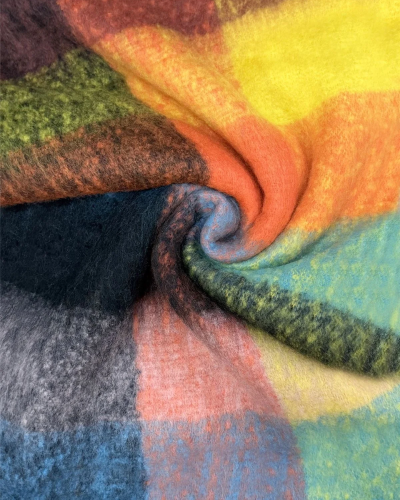 Cute through the dreary days with the Checked Wool Blanket Scarf. These rich hues or black, orange and mustard will keep you feeling cosy vibes no matter the weather. Stay fashionable and functional all day long.