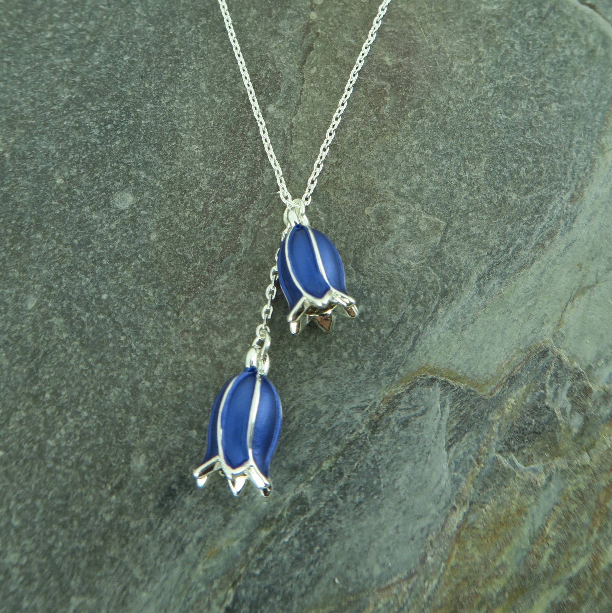 Bluebell hand enamelled silver plated charm pendant necklace.