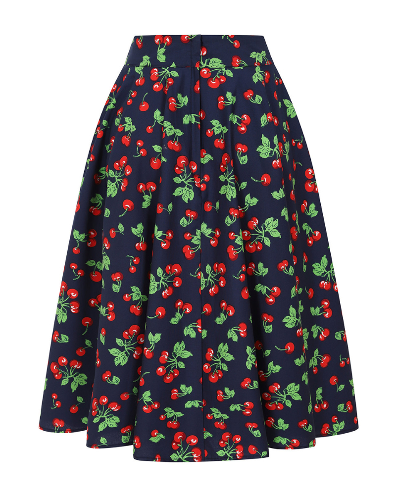 - COTTON MIX CIRCULAR SKIRT IN A BRIGHT & FUN CHERRY PRINT.