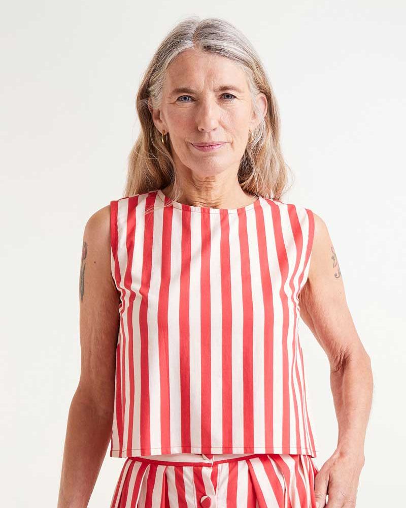 Cheesecake Red Stripe Sleeveless Top By Compania Fantastica.