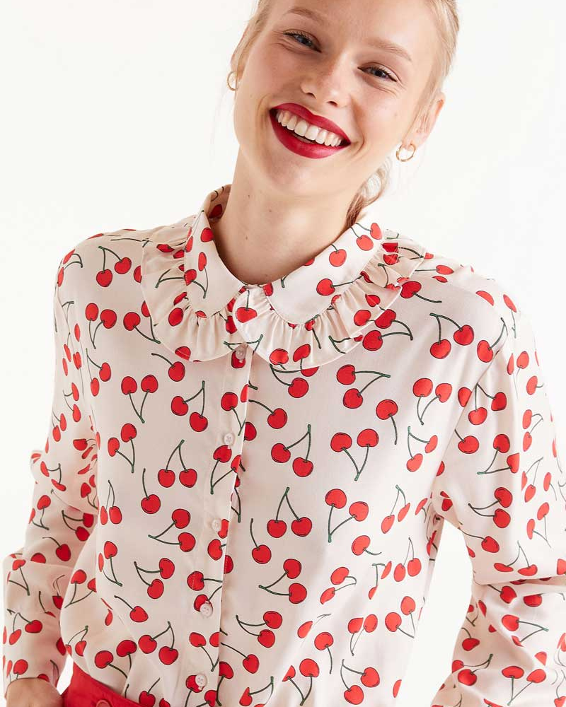 Cherries Print Frill Collar Blouse By Compania Fantastica.