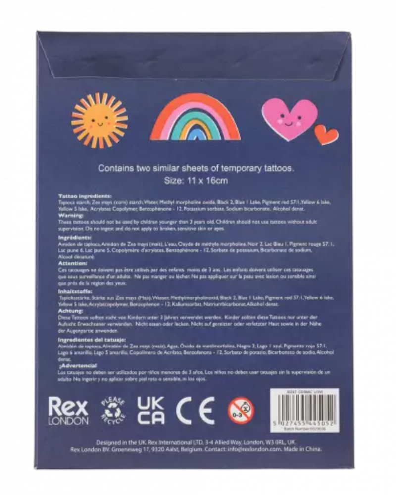 These Cosmic Love Temporary Tattoos by Rex International are just perfect for any stargazer in your life! With a range of cute and fun different space/ love themed designs, you or your child can have a lot of fun with these gorgeous tatts. Designs include rainbows, shooting stars, and love hearts. Easy to use: just add water!