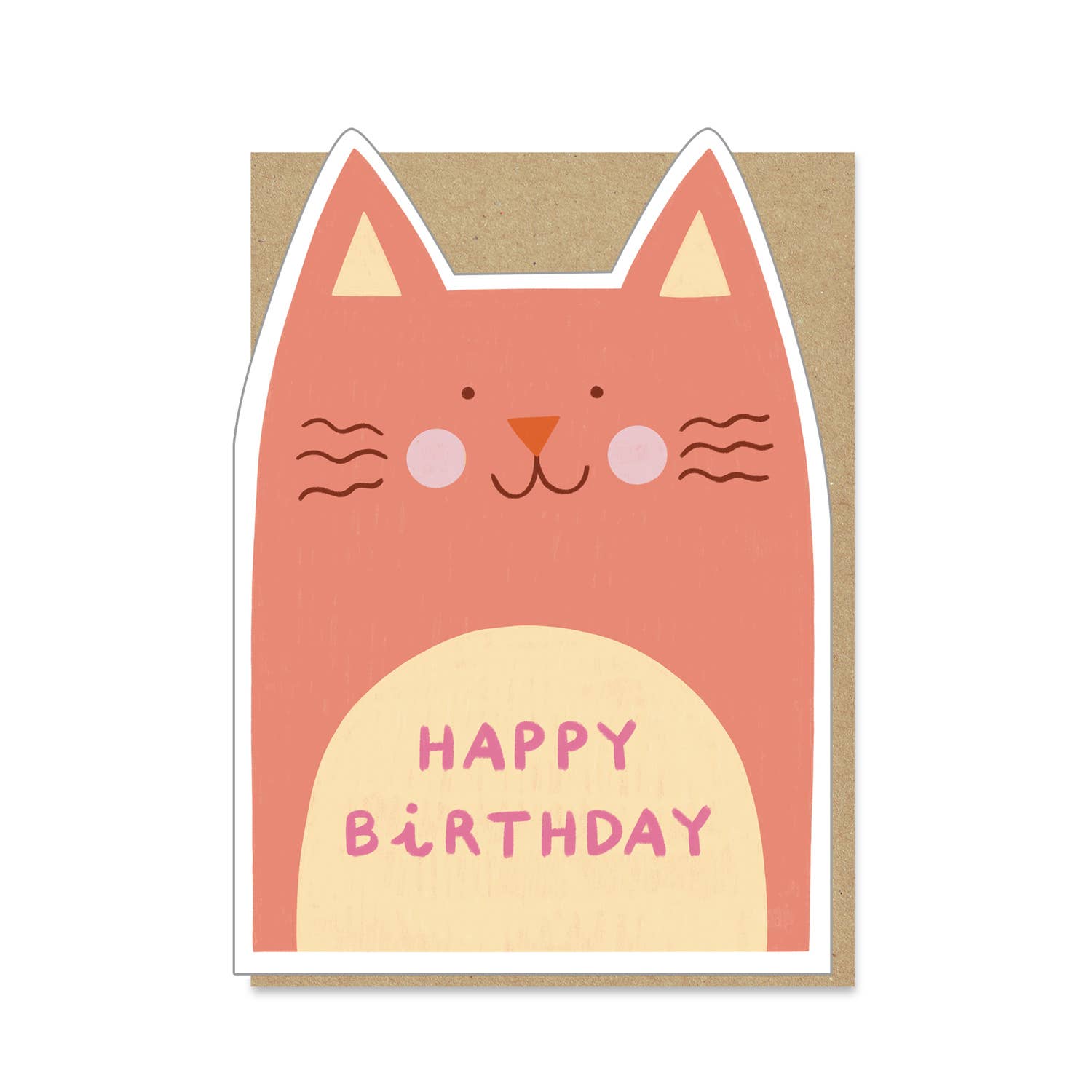 This cute cut-out card features a happy cat and some cheery birthday wishes.