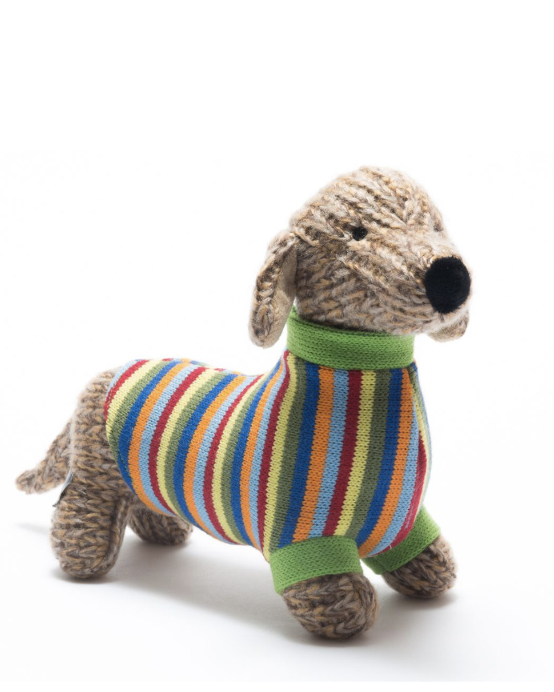 Dachshund Sausage Dog In Rainbow Striped Jumper Toy