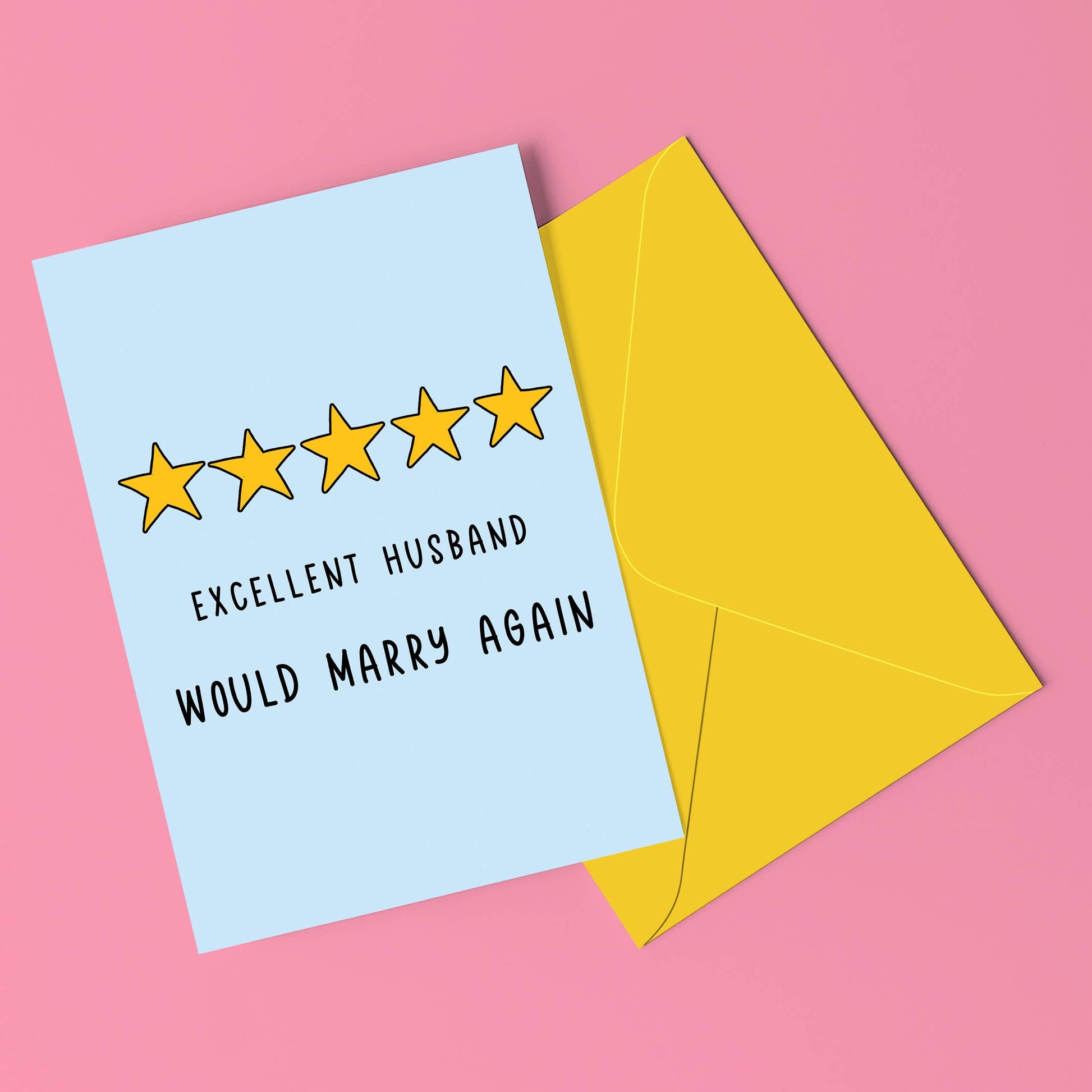 Sail through your annual relationship review (anniversary) with the Excellent Husband Greetings Card. This playful card is a fun way to show him he’s top-notch, combining humor and heartfelt appreciation to make the occasion extra special, but serves as a reminder that he could all too well drop to a 4!