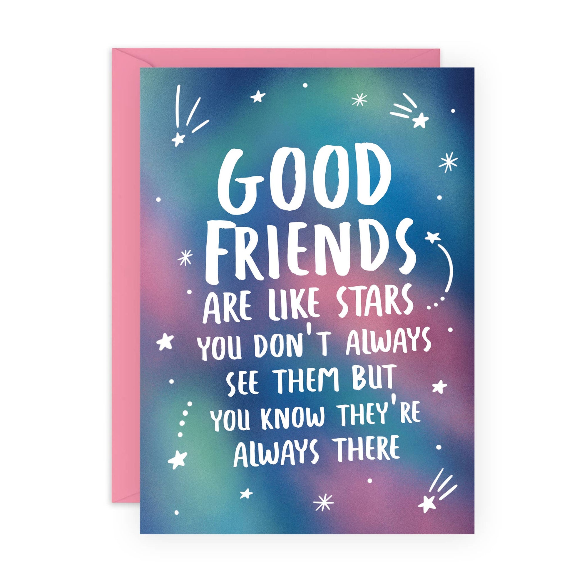 Leave your loved ones starry eyed with the Friends Are Like Stars Greetings Card. This beautiful message is perfect for birthdays, special occasions or just to show you care. Show some celestial support today.