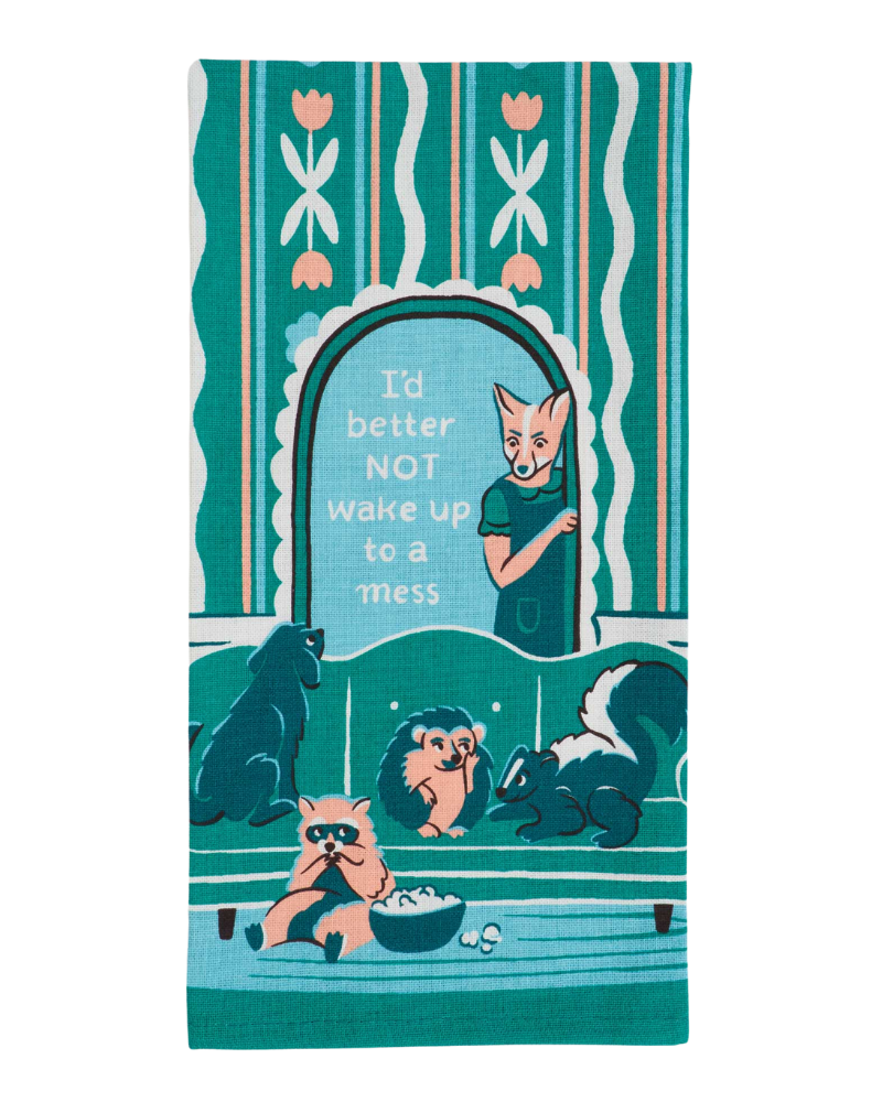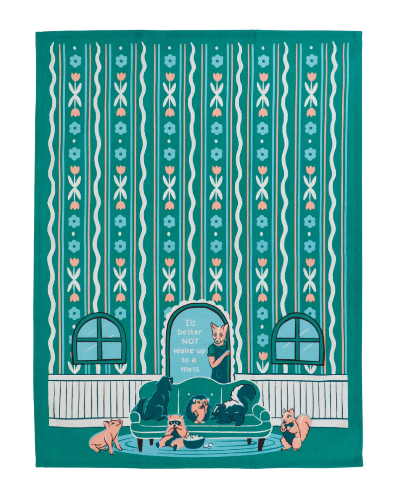 Were you raised in a barn? Well these woodland creatures certainly won't stand for excuses! The I Better NOT Wake Up To A Mess Dish Towel features playful critters ready for mischief and a foxy mama standing her ground! Soft and absorbent, it’s perfect for reminding your rowdy bunch not to be too wild!