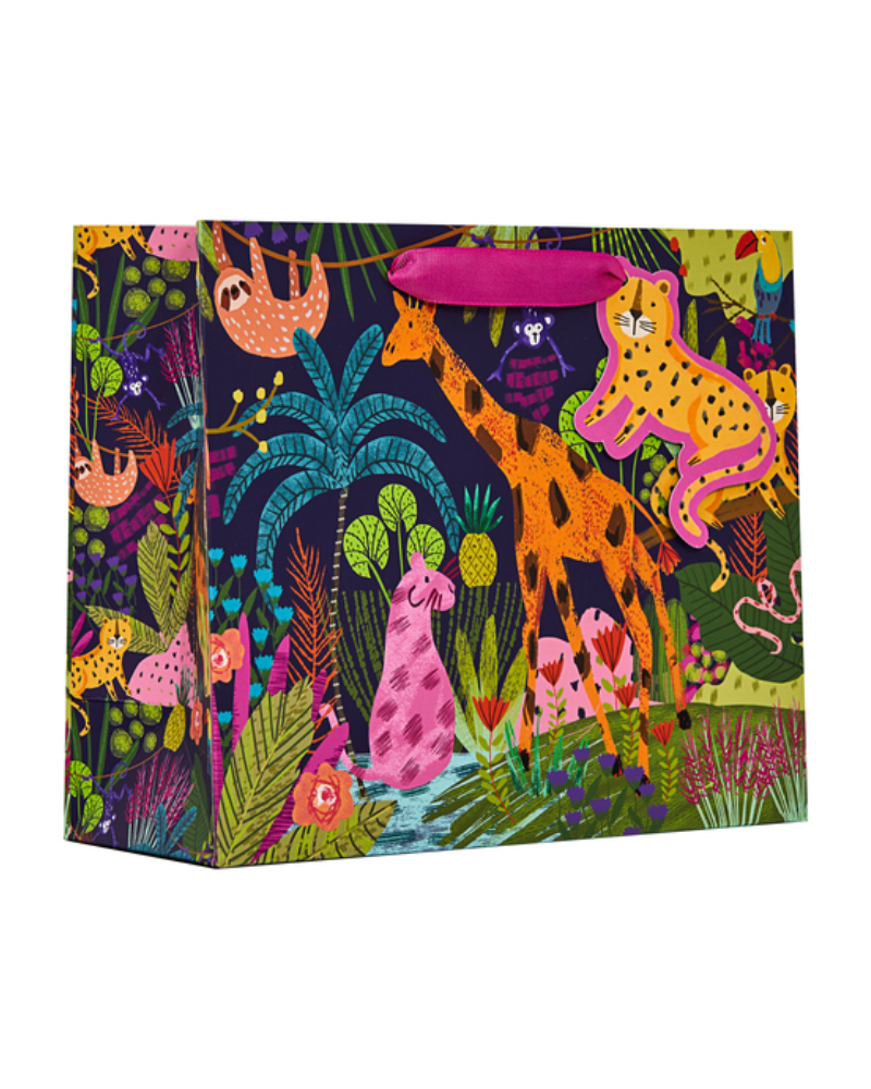Jungle Gift Bag with Ribbon Handles And Gift Tag.