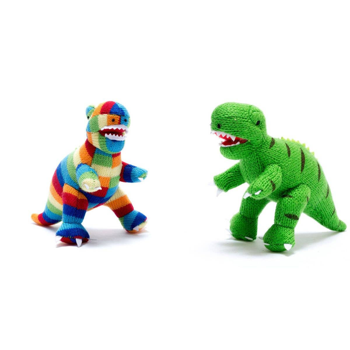 Knitted T Rex Dinosaur Baby Rattle Bold Stripe