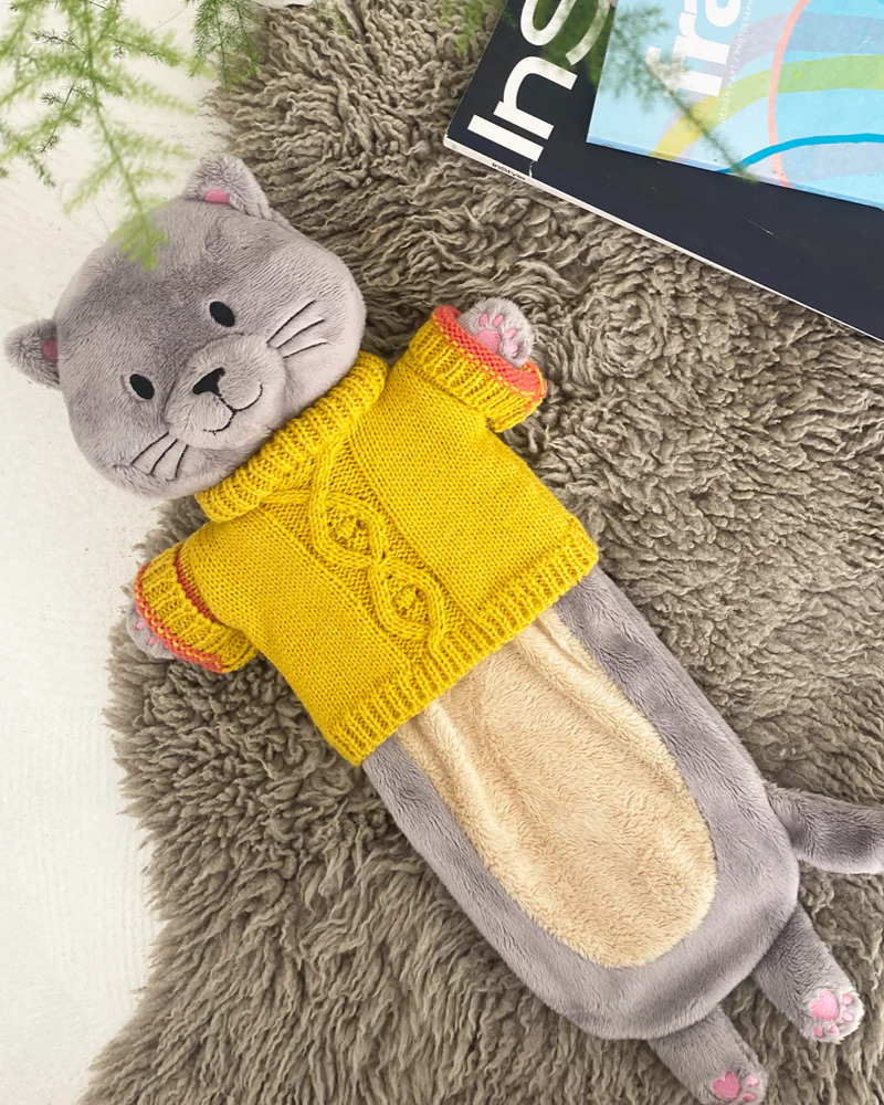 Warm up your paws with this purr-fectly cozy long hot water bottle featuring a cat in a mustard jumper! It’s the ulti-mutt companion to keep you feline fine on chilly days. Snuggle up and let this warmth chase away the cold.