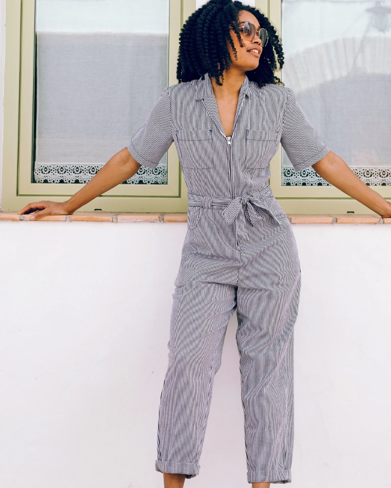 Meredith Monochrome Stripes Boilersuit By Sugarhill Brighton.