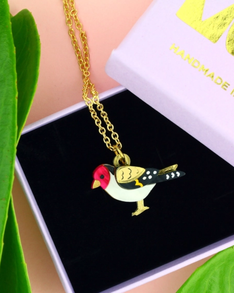 Mini Goldfinch Bird Charm Necklace BRDNK MIN GF