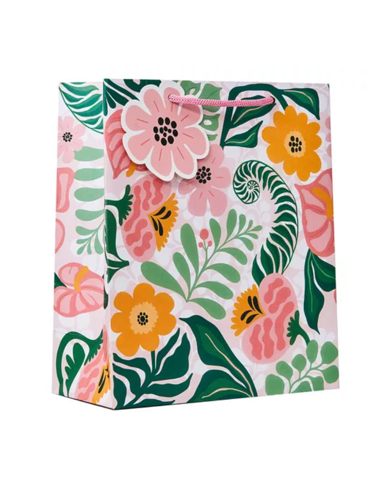 Modern Flora Gift Bag with Ribbon Handles And Gift Tag.