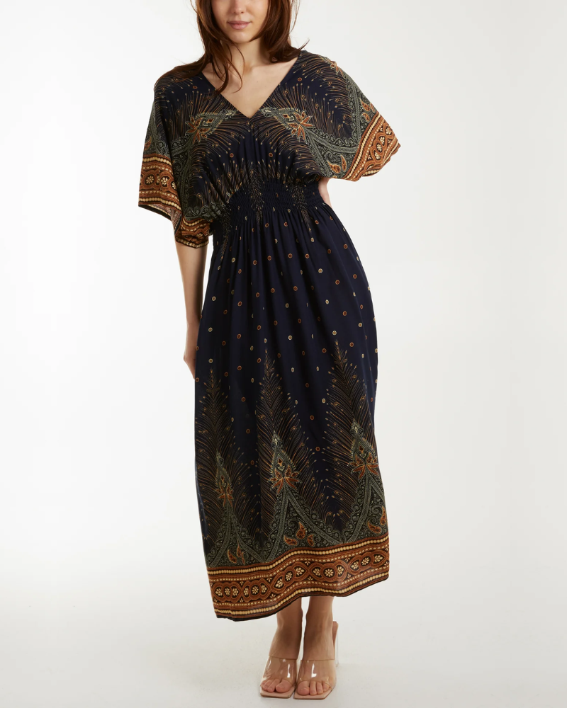 Peacock Print Maxi Dress