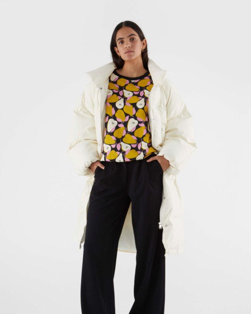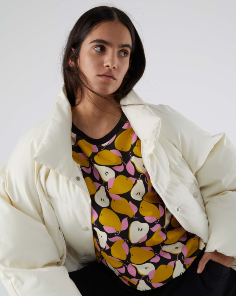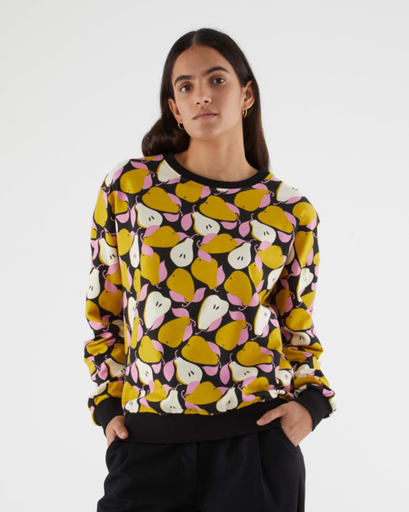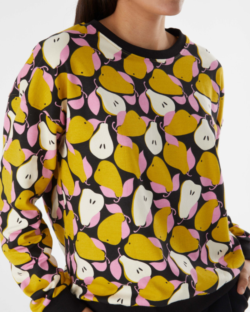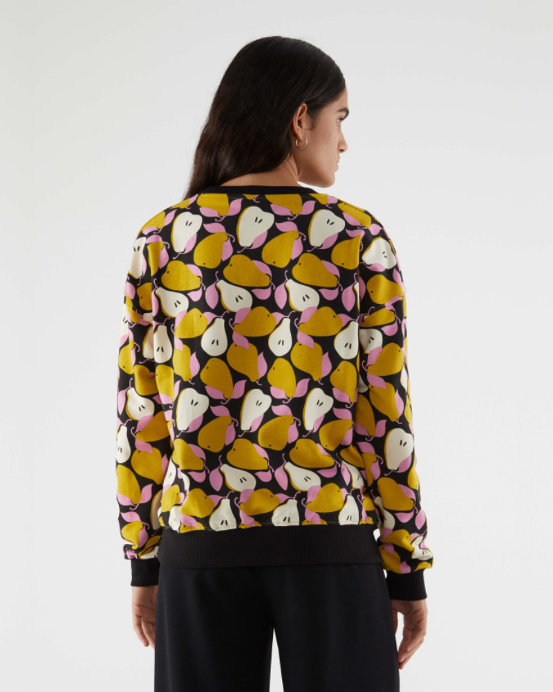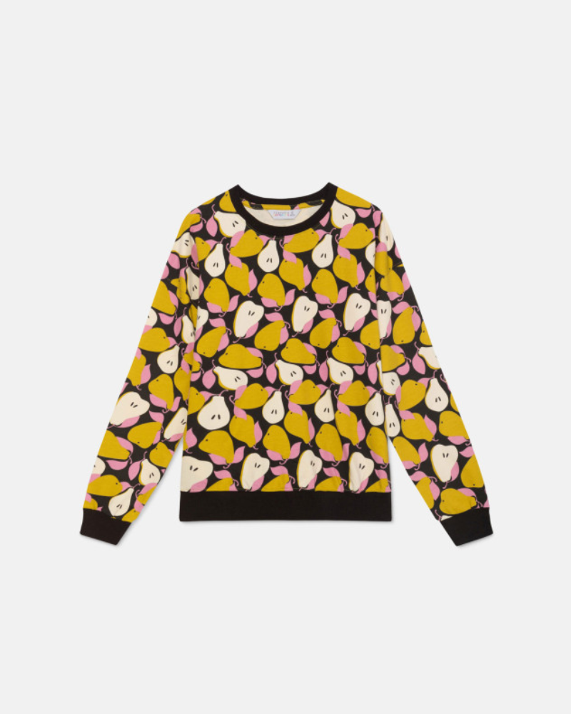 Cotton sweatshirt with pear print. With a round neck and long sleeves. Detail of ribbed finishes. The model is 170 cm tall and wears a size S.