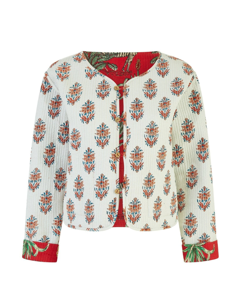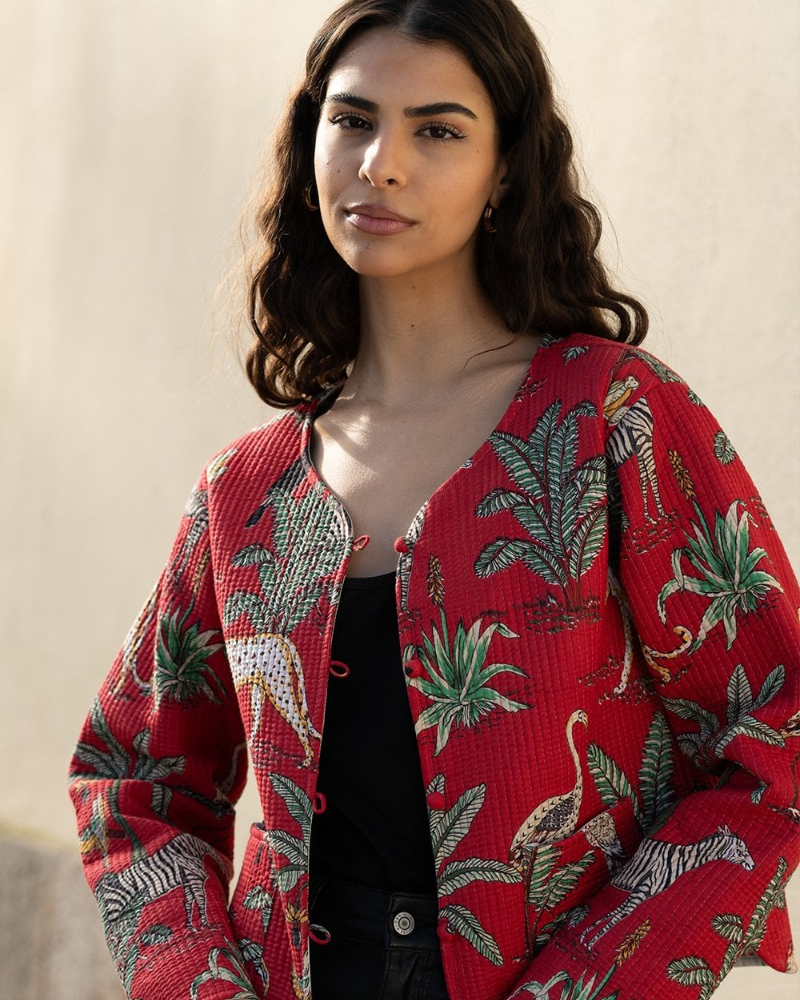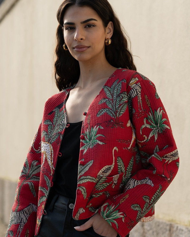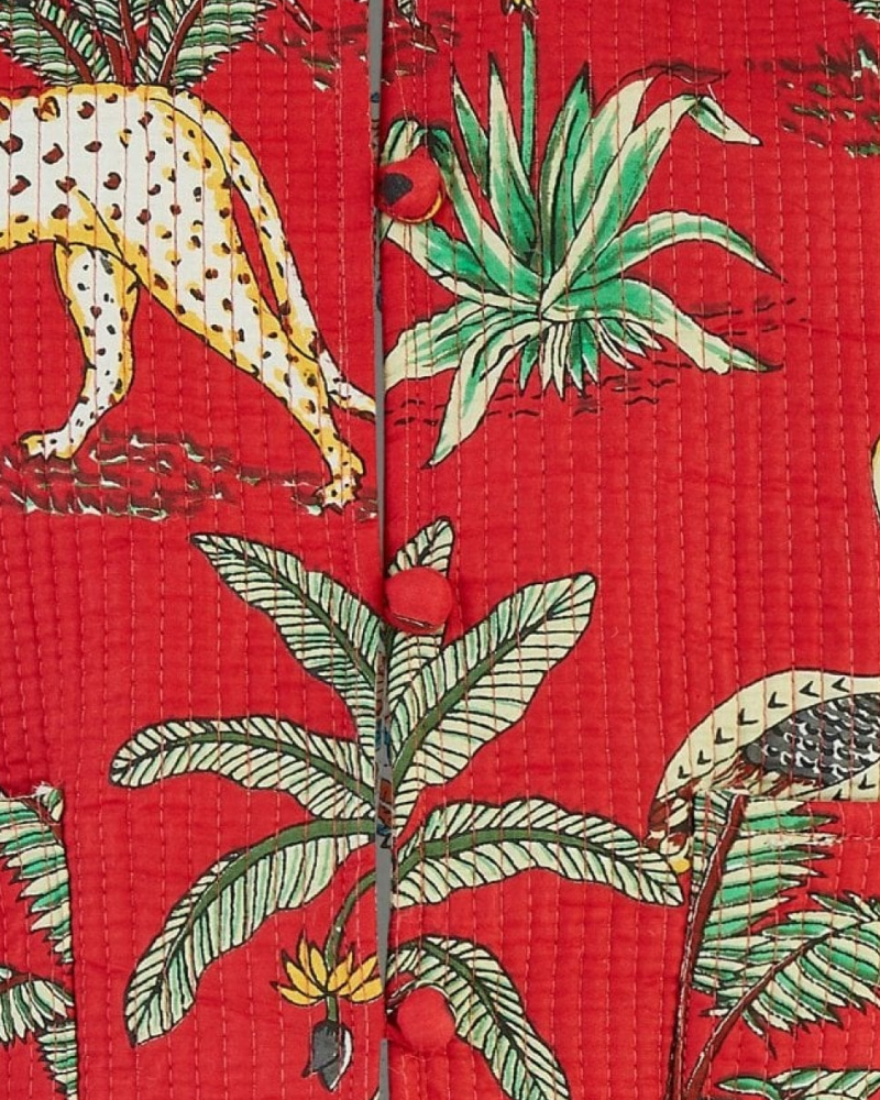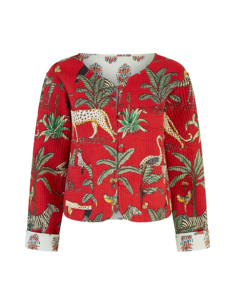 Red Reversible Animal Print Quilted Jacket by Yumi