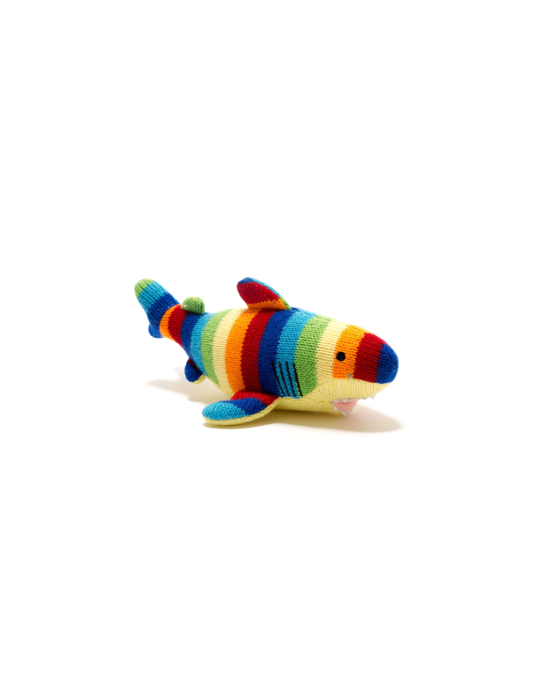 Shark Knitted Baby Rattle Rainbow Stripe