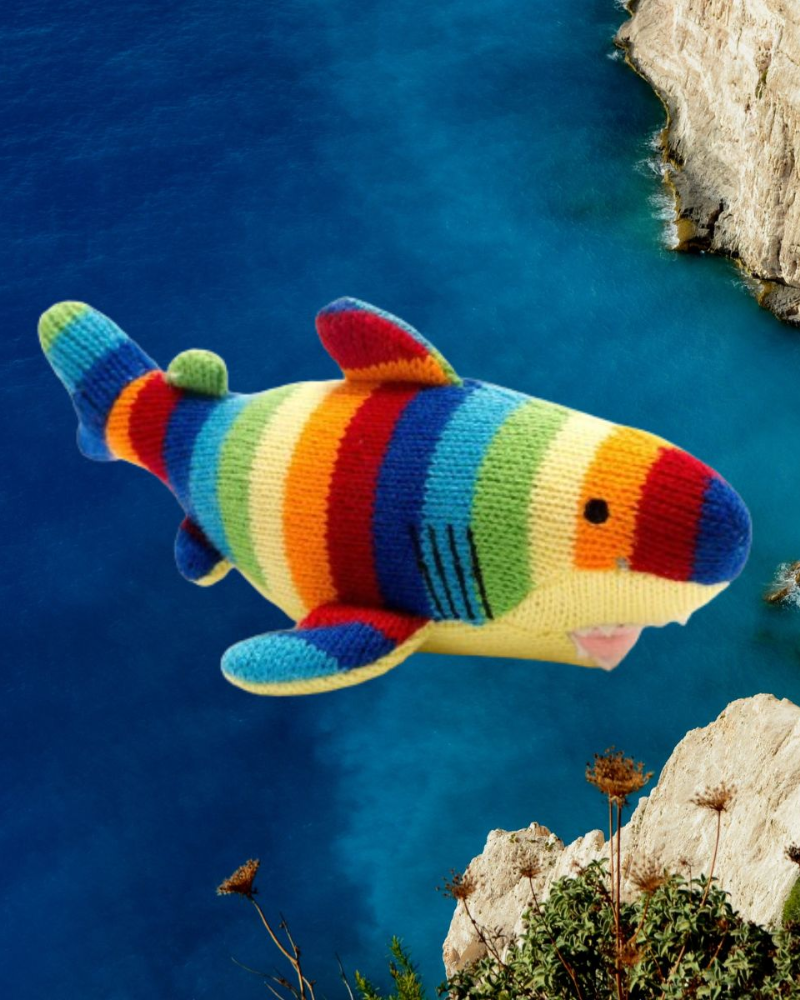 Shark Knitted Toy Rainbow Stripe.