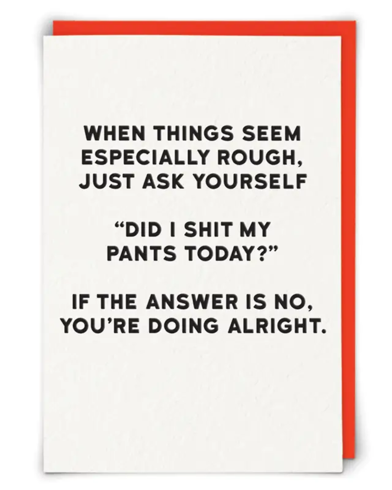 "When things seem especially rough, just ask yourself 'Did I shit my pants today?' If the answer is no, you're doing alright."