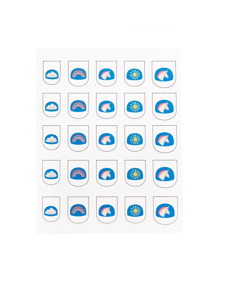 Set of 25 magical nail stickers to brighten your day. Set includes unicorns, rainbows, clouds and smiling suns! When its miserable outside bring some sunshine to your nails and take some some much needed time to yourself or share with a wee one!